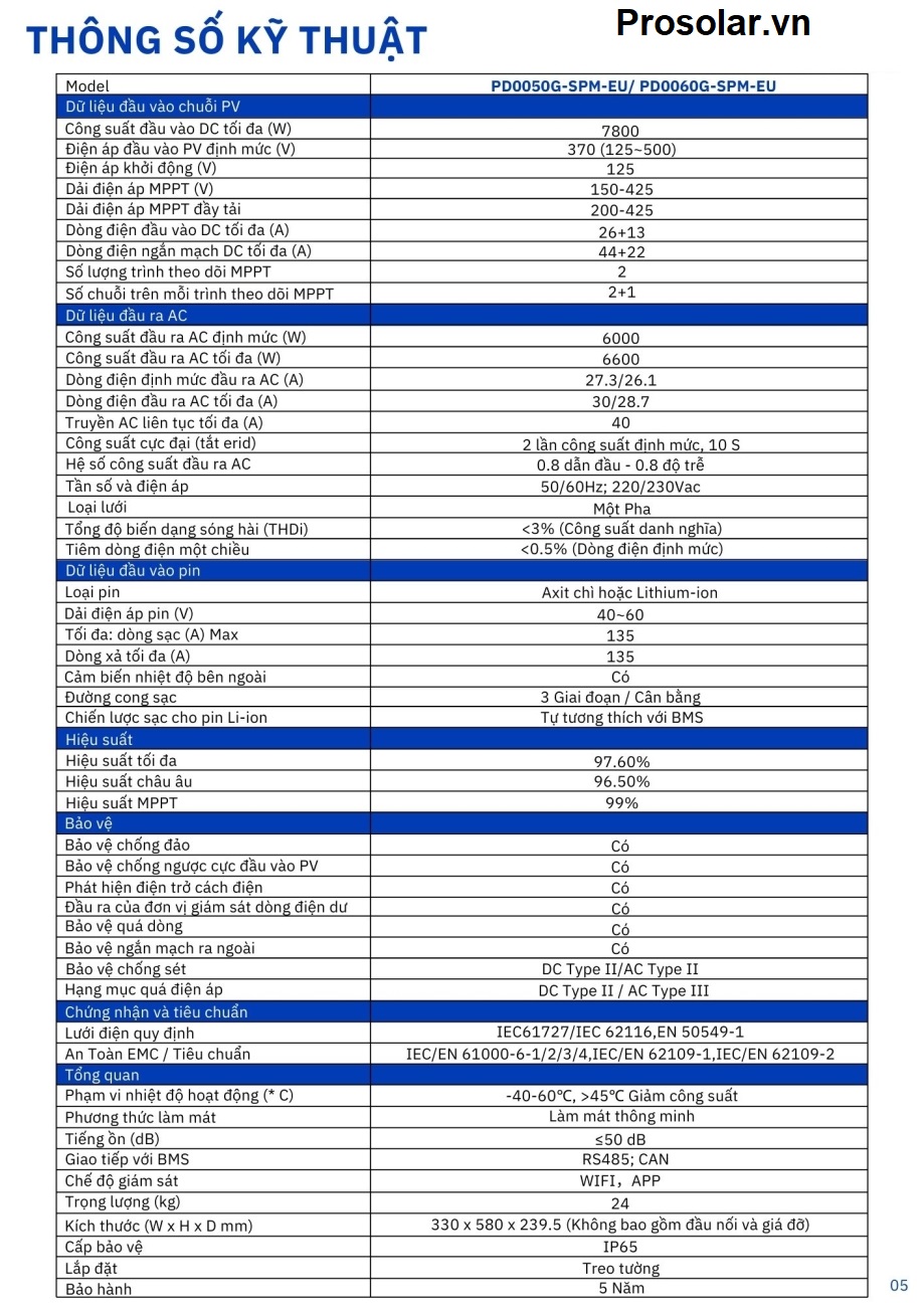 Với thiết kế chắc chắn và công nghệ tiên tiến, Power Master 6KW mang lại hiệu suất cao, độ bền lâu dài và khả năng hoạt động ổn định trong nhiều điều kiện môi có điện lưới hoặc độc lập.